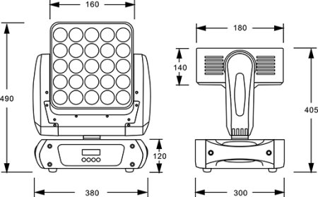 Прилад має дійсно високі люмени для споживання енергії 300 Вт. Його можна контролювати за допомогою протоколу DMX512 або спеціального програмного забезпечення для управління комп'ютером. Рух здатний створювати приголомшливі нові ефекти завдяки професійному програмуванню.