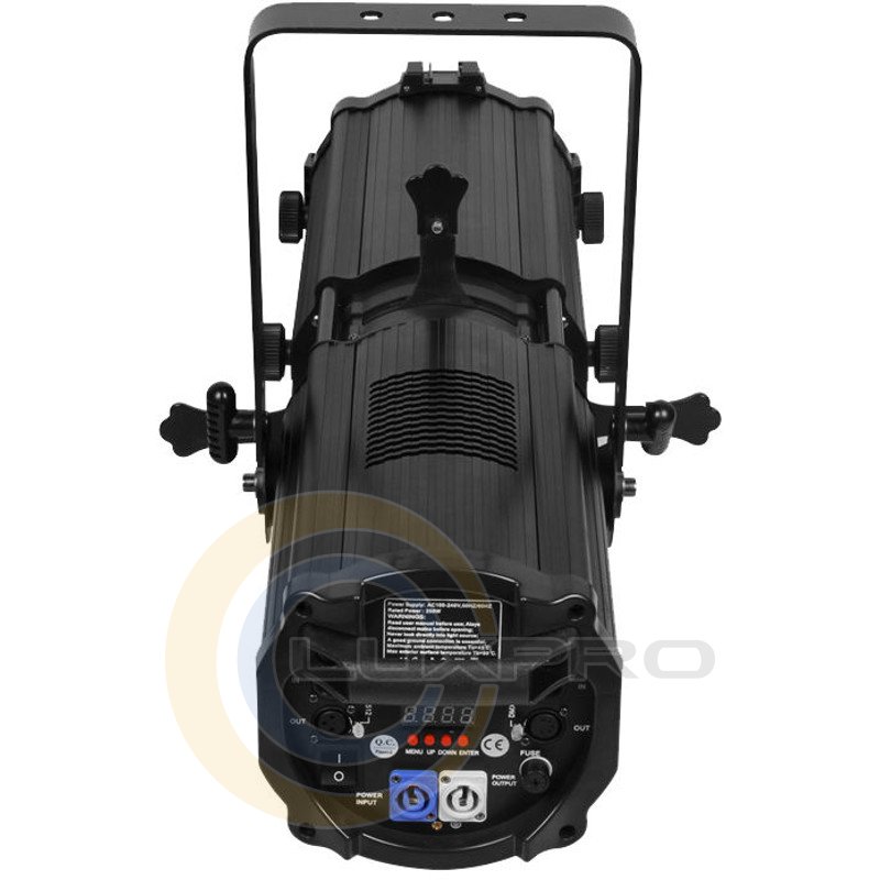 Вхідна напруга: AC90 / 260V 50-60Hz, джерело світла: 1х200 Вт теплий білий 3200K COB LED, DMX512, master-slave і звукова активація, вбудовані програми, 1/3 DMX каналів управління, споживана потужність: 160 Вт, розміри: 720х195х415 мм, вага: 10,2 кг.