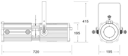 Вхідна напруга: AC90 / 260V 50-60Hz, джерело світла: 1х200 Вт 2-в-1 холодний білий + теплий білий COB LED, DMX512, master-slave і звукова активація, вбудовані програми, 2/5 DMX каналів управління, споживана потужність: 260 Вт, розміри: 720х195х415 мм, вага: 10,2 кг.