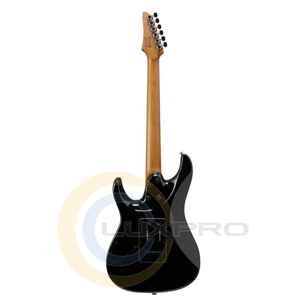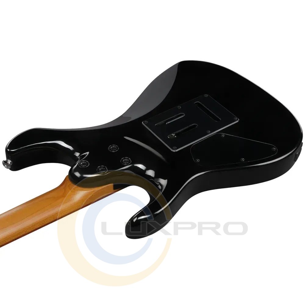 Гітара оснащена двома хамбакерами Ibanez Modern Custom на магнітах Alnico, які забезпечують потужне, сучасне звучання з високою розбірливістю навіть при високому гейні. Система перемикання dyna-MIX10 з Alter Switch відкриває десять варіантів тембрів, дозволяючи легко переходити від щільних рокових рифів до чистих і прозорих партій. Тремоло-бридж T106 з незалежними сідлами забезпечує точне налаштування інтонації та стабільну роботу тремоло. Чорне покриття додає інструменту стриманого й професійного вигляду.Характеристики: