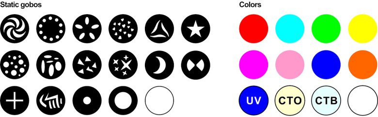 - статичне колесо гобо - 16 гобо + відкритий, включаючи корекцію променя;