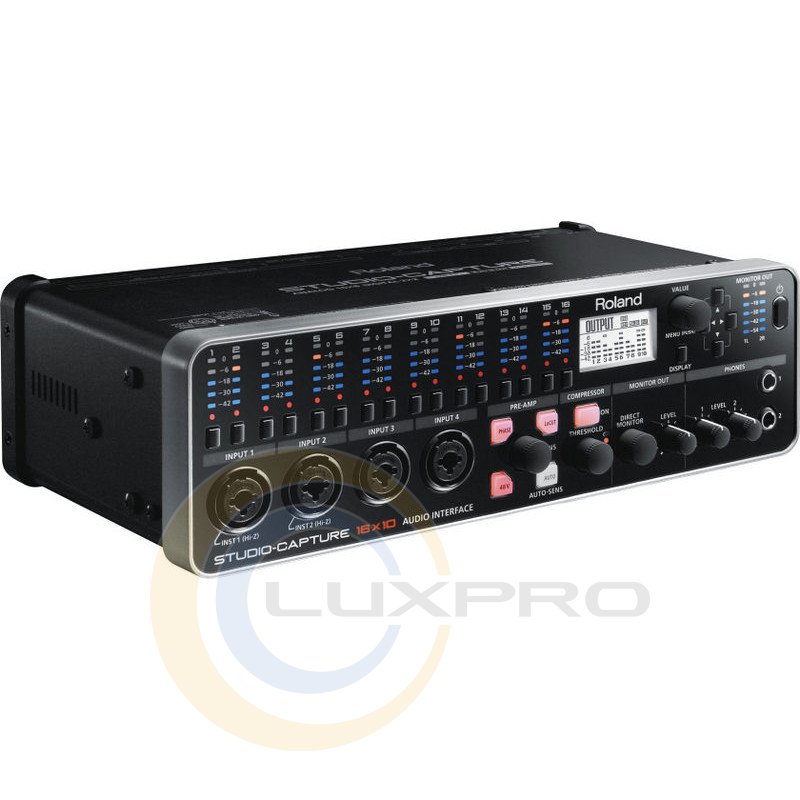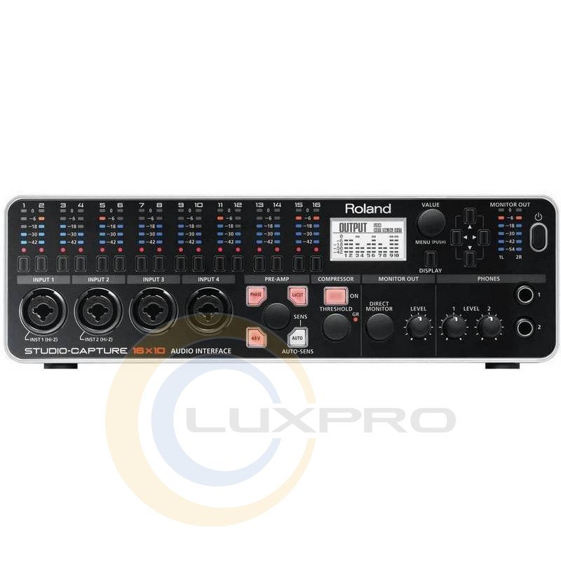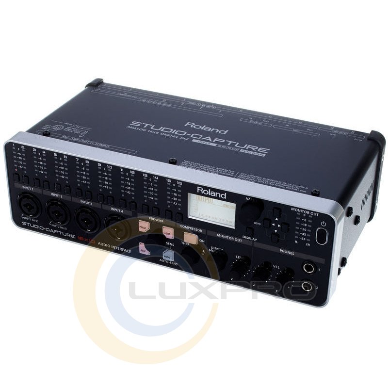 ROLAND UA1610 Studio Capture - USB аудіоінтерфейс, 12 мікрофонних передпідсилювачів преміум класу. Володіючи 16 входами, 10 виходами, MIDI входом / виходом, аудіоінтерфейс ROLAND UA1610 Studio Capture здатний задовольнити будь-які професійні запити. Звукова карта являє височайше якість звуку 24 біт / 192 кГц, зручну індикацію рівня сигналів на передній панелі, виділені моніторні виходи на XLR з окремим управлінням, два виходи для навушників, ультра стабільний драйвер з технологією VS STREAMING і безліч інших важливих і корисних можливостей.
