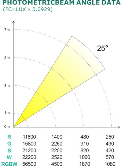 - Кількість світлодіодів: 24 * 18 Вт 6-в-1 світлодіодів (RGBWAUV)