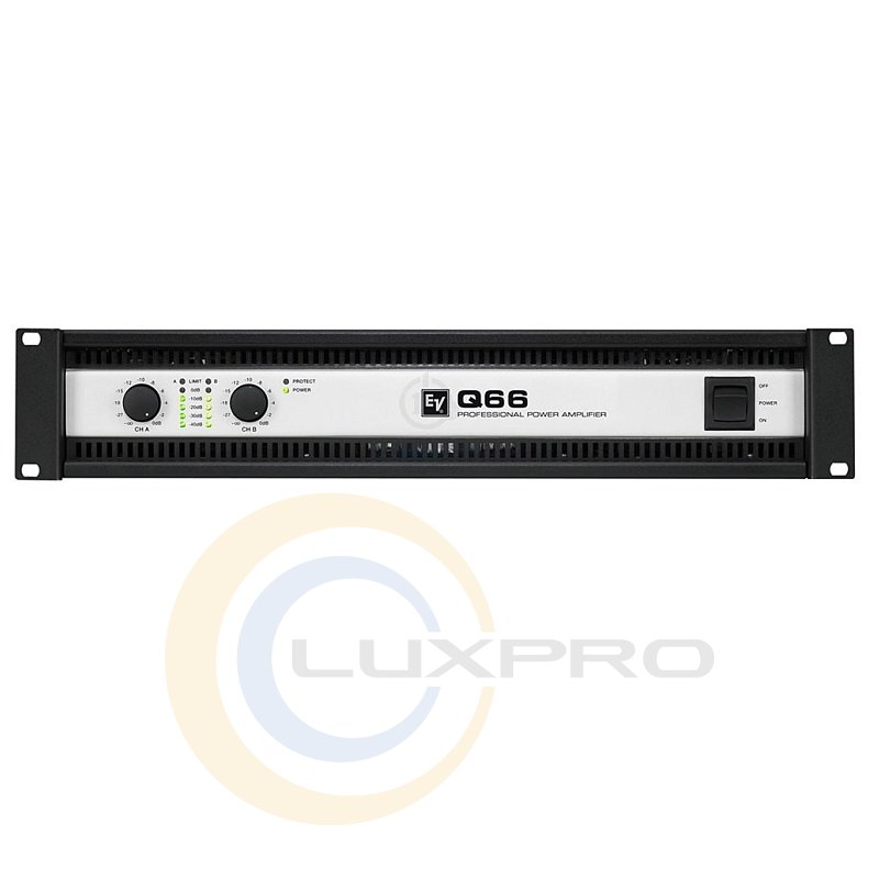 Всі підсилювачі EV мають схему дозволяє без спотворень передавати короткочасні сигнали з 30% перевищенням номінальних значень потужності. Далі вступає в дію схема динамічного лімітування, що забезпечує плавне обмеження сигналу без ступінчастою форми перехідних процесів, що знову ж таки, веде до максимального зниження нелінійних спотворень. При цьому, підсилювачі серії Q досить безболісно переносять роботу на 2 Ohm.