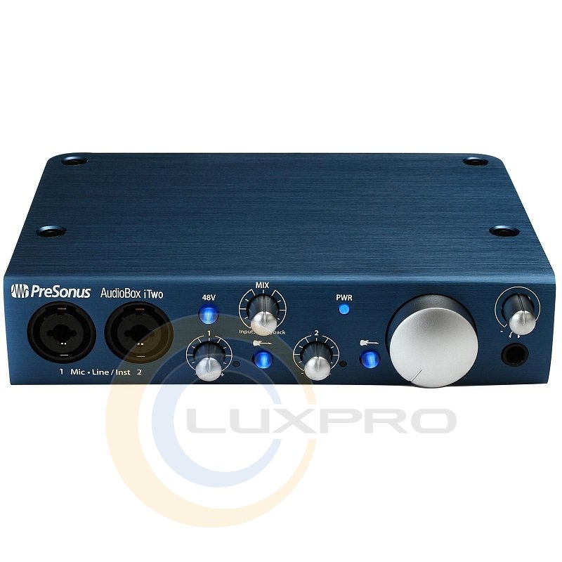 У комплекті поставки потужне і просте у використанні програмне забезпечення Studio One Artist DAW для Mac і Windows, Capture Duo для iPad. PRESONUS AUDIOBOX ITWO - це мобільний інтерфейс в кращому сенсі цього слова. Він може розміщуватися на столі, легко поміщається в рюкзак або сумку для ноутбука, і розрахований на живлення від шини USB, так що вам не доведеться возитися з проводами джерел живлення. Аудіоінтерфейс PRESONUS AUDIOBOX ITWO готовий подорожувати разом з вами і витримувати найсуворіші умови експлуатації.Характеристики: