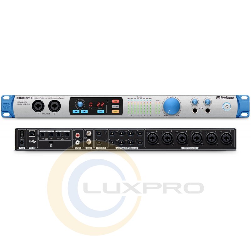 Аудіоінтерфейс PRESONUS STUDIO 192 призначений для використання в якості центрального вузла для будь-якої проджект або професійній студії. На борту є Dim і Mono клавіші дозволяють взяти під контроль Main Mix, а також підсилювач для навушників. Використовуйте 10 балансних виходів для комутації. З гнучким програмним забезпеченням і рясними входами / виходами, Звукова карта PRESONUS STUDIO 192 вписується в будь-яку звукозаписну студію.Характеристики: