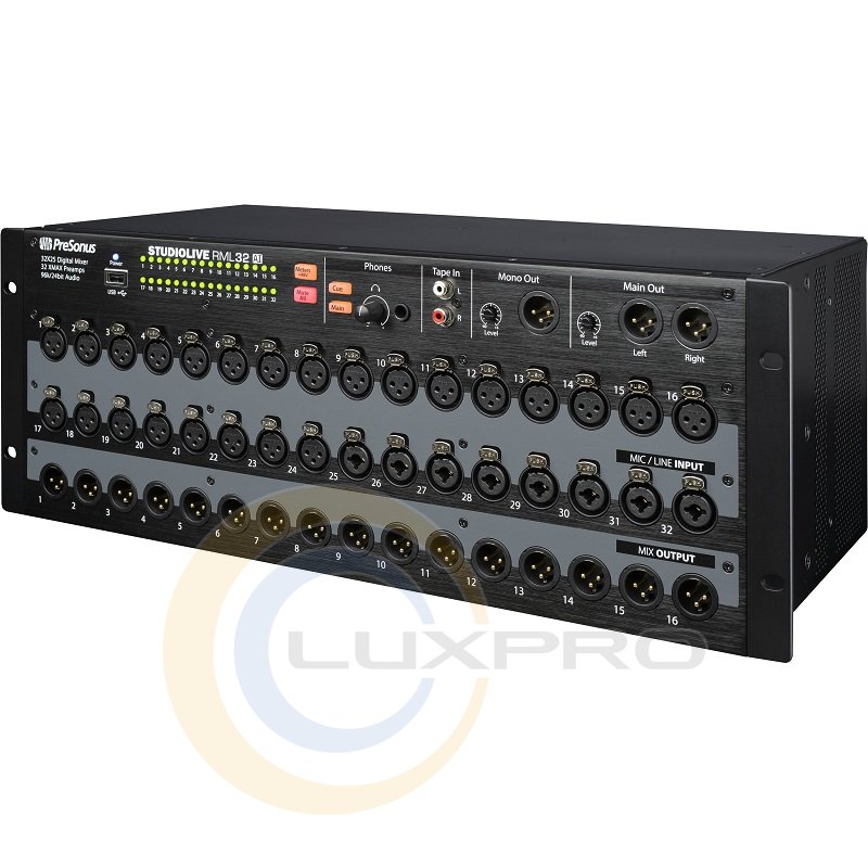Цифровий рековий мікшер StudioLive RML32AI підійде для студійного або сценічного застосування. Модель розроблена на базі версії StudioLive RM32AI, від якої відрізняється великою гнучкістю завдяки наявності лінійних / мікрофонних входів комбо XLR-1/4 дюйма. В мікшері підтримується віддалене управління по Wi-Fi і Ethernet через ПО UC Surface (безкоштовне, є варіанти під iPad, ПК і Mac). З iPod / iPhone можна контролювати моніторний мікс через ПО для iOS QMix-AI. Крім цього, можливо управління через консоль StudioLive CS18AI. Підключення по мережному інтерфейсі AVB.