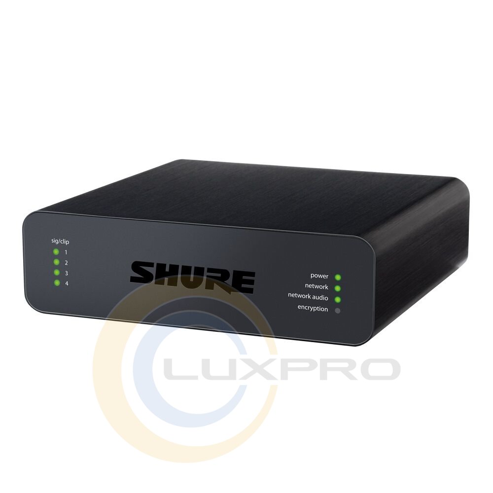 Мережеві аудіо інтерфейси Shure ANI4OUT-XLR підтримують дротове підключення до чотирьох мікрофонів як безпосередньо, так і за допомогою мереж Dante з метою полегшення аудіо-комутації і підключення веб-інтерфейсу управління. Мережевий аудіо інтерфейс ANI4OUTXLR перетворює цифровий аудіо сигнал Dante в чотири дискретних лінійних /мікрофонних аналогових сигналу.