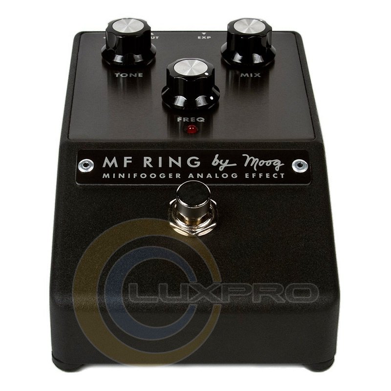 MOOG MINIFOOGER RING MODULATOR - аналогова педаль кільцевої модуляції, холодний bypass, вихід на педаль експресії, дозволяє модулювати основний сигнал в цифровий. Принцип роботи модулятора ґрунтується на спеціальній керованої ручці MIX, сигналі з осцилятора і безпосередньо на ручці FREQ регулювання і контролю вихідних сигналів. На передній панелі пристрою є все необхідне для інтуїтивного управління, прилад малогабаритний і не займає багато робочого простору. Педаль оснащена спеціалізованим датчиком для зниження перешкод.Характеристики: