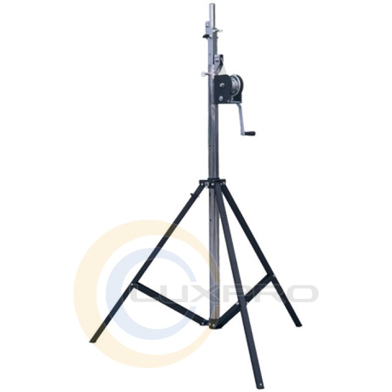 Стійка для світлових приладів, тринога, з лебідкою, максимальне навантаження до 98 кг, висота 1,8-3,8 м, опціонально необхідний Т-образний перехідник SKDRF005 для установки ферми на стійку.