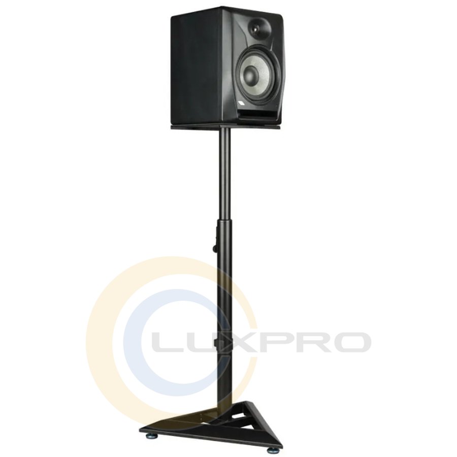 Універсальна підставка для студійних моніторів формату «3-в-1» поєднує одразу кілька функцій: вона може використовуватись як класична стійка для моніторів, як адаптер між акустикою та сабвуфером із різьбленням M20, а також як підлогова опора. Опорна трубка діаметром 35 мм гарантує сумісність із більшістю професійних акустичних систем. Оновлена трикутна основа забезпечує підвищену стійкість і оснащена рухомим направлячем для акуратного укладання кабелів. Міцна сталева конструкція доповнена литим алюмінієвим механізмом регулювання висоти з автоматичним фіксатором для безпечної експлуатації. Підставка однаково добре підходить як для домашніх студій, так і для професійних звукозаписних просторів.Характеристики: