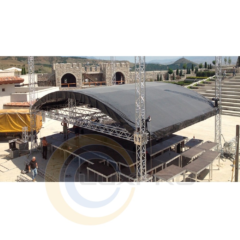 Дах з дуговим склепінням (арочна) була спроектована для використання її під час проведення невеликих заходів. Дахи AR-арки призначені для заходів під відкритим небом середнього розміру. Сучасні дахи можуть бути зібрані дуже швидко. Підстава конструкції виконано із застосуванням системи QUA 290 HD3 (товщина стінки 3 мм), однак, є можливість виконання конструкції із застосуванням системи QUA 390 x 600, що значно збільшує вантажопідйомність даху. Обшивка даху виготовлена з ПВХ-матеріалу, доступного в різних кольорах. Крім того, для кожної даху можна замовити додаткові бічні екрани (сітки) з повітропроникного матеріалу, які захищають сцену від вітру, дощу і т.д. Бічні екрани і обшивка даху мають сертифікати на вогнестійкість. Кожна дах має найвищу якість. Кожен елемент ретельно перевіряється. Як бічні сітки, так і матеріал поверхні даху мають сертифікати пожежної безпеки, якість матеріалів, з яких виготовлений дах, знаходиться на найвищому рівні і виправдає всі очікування. За бажанням замовника можна провести детальний структурний аналіз, щоб підтвердити допустиме навантаження.