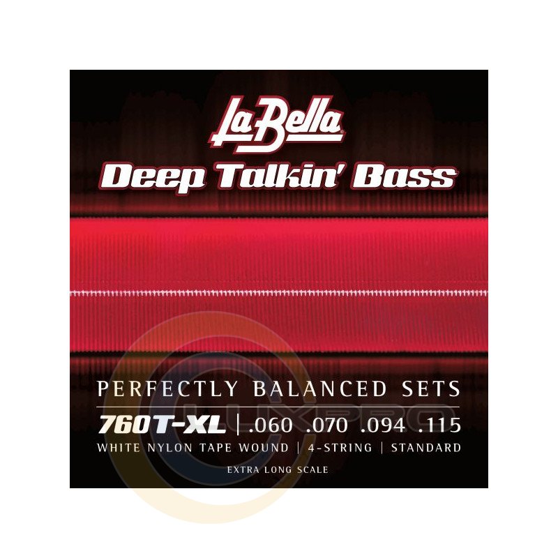 La Bella 760T-XL — це комплект 4-струнних басових струн з білою нейлоновою стрічковою обмоткою (White Nylon Tape Wound), що забезпечує яскравий тон і тривалий сустейн. Вони призначені для бас-гітар з подовженим мензурою (Extra Long Scale) та ідеально підходять для професійної гри на сцені та в студії.Струни мають стандартний натяг (Standard Tension), що дає баланс між комфортом гри та щільністю звучання. Завдяки гладкій обмотці, вони забезпечують легкий і контрольований відгук.Особливість Extra Long Scale: відстань від ball-end до шовкової частини (silk) складає 38″. Лише шовкова частина повинна обмотуватися навколо колка; обрізати можна тільки шовк, інакше струна розплететься.Виготовлені в США з American Wire, ці струни мають високу якість і стабільність звучання. Упаковка з технологією MAP (Modified Atmosphere Packaging) захищає струни від окислення та зберігає їхню свіжість.Характеристики: