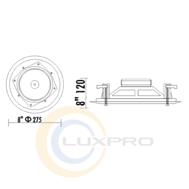 Двосмугова акустична система T-208A для врізного стельового монтажу. Металеві грати і пластиковий корпус пофарбовані в нейтральний білий колір. T-208А має високу якість звучання і широкої частотної характеристикою. Ідеально підходить для розміщення в ресторанах, готелях, навчальних закладах, офісах, конференц-залах.