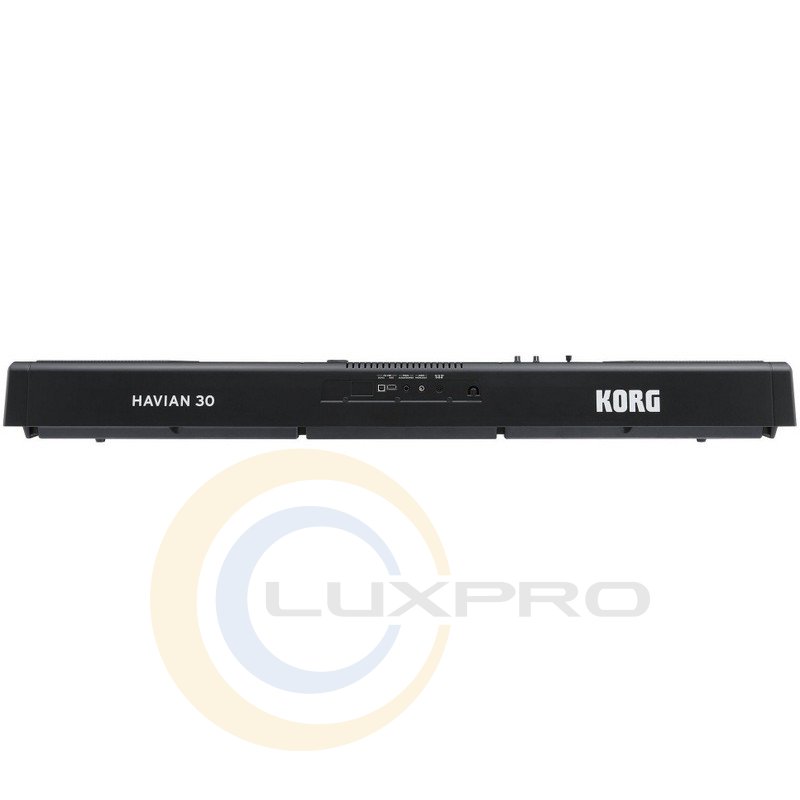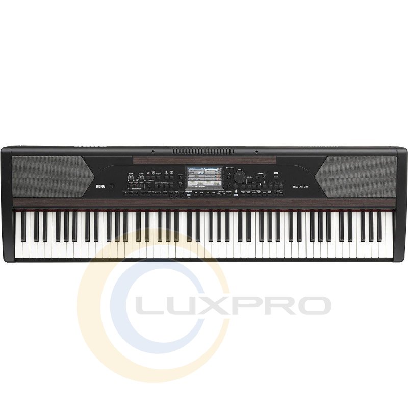 Korg Havian 30 - цифрове піаніно з виваженою молоточкової клавіатурою на 88 клавіш, автоакомпанементом, 420 стилями, 950 тембрами, MIDI і MP3 записом / відтворенням, 2 динаміками по 25 Вт і виходом на навушники.Havian 30 дозволяє легко вибрати музичний стиль, внести кілька акордів і насолоджуватися повноцінним акомпанементом. Кожен стиль має 15 елементів, таких як вступу, бриджі, приспіви і т.д. Перемикання між цими частинами можна здійснювати в процесі гри, просто натискаючи на відповідні кнопки. Для виконавця передбачені широкі можливості настроювання інструментів і частин, які прикрасять Вашу аранжування, а й самі пресети стилів досить різноманітні і дають можливість імпровізувати зі смаком.У Korg Havian 30 можна знайти великий набір композицій, яких можна зіграти завдяки наявності SongBook, віртуальної бази даних музики, навігація по якій здійснюється за назвою мелодії, виконавцем, жанром і темпу. Редагувати SongBook можна за допомогою комп'ютера або планшета (кабель в комплект не входить).Також, до Havian 30 можна підключити USB-носій з Вашою музикою або MIDI-файлами. Система підтримує формати MP3 (аудіо) і MID (MIDI), в які також можна і записувати. У процесі навчання можна додавати маркери в файли для миттєвого повернення до певного місця, які потрібно відпрацювати.Характеристики: