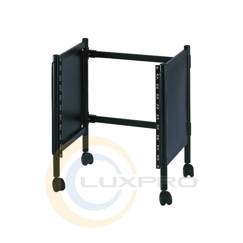 Для захисту обладнання, стійка оснащена металевими боковинами і від'єднувати коліщатками для оперативного і швидкого переміщення всередині студії або сцени.