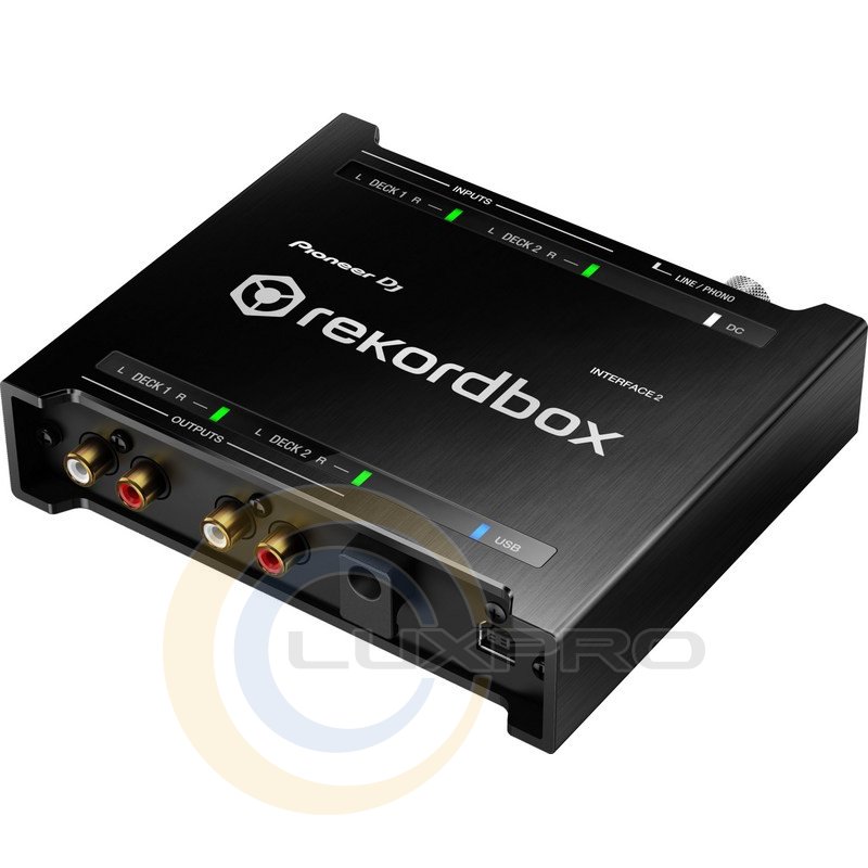 PIONEER INTERFACE2 - двоканальна звукова карта відкриває екосистему rekordbox для будь-якого діджея. Вона дозволяє використовувати програмне забезпечення rekordbox dvs для скретча і управління музичними файлами на будь-якому DJ-сетап. Високоякісні компоненти інтерфейсу дозволяють йому забезпечувати клубне якість звуку в будь-якій ситуації. Також PIONEER INTERFACE2 оснащений LED-індикаторами, які показують рівень сигналу і попереджають про проблеми з ним. Щоб ви змогли почати роботу з INTERFACE 2 відразу після його розпакування, в комплекті з пристроєм поставляються ліцензійні ключі для ПО rekordbox dj і rekordbox dvs, а також два вінілових тайм-код диска.Професійна DVS DJ система PIONEER INTERFACE2 включає аудіоінтерфейс Interface 2 24-bit / 96 кГц, пластинки з тайм кодом, кабелі 4 шт, блок живлення, ПО rekordbox dvs і rekordbox dj. Можливість живлення по шині USB або від адаптера змінного струму. Використання високоякісних конвертерів і підтримку частот дискретизації до 96 кГц. Можливість використання в якості Stand-alone інтерфейсу для 2-канального звуку на комп'ютер.Звукова карта PIONEER INTERFACE2 відмінно підійде для концертного використання, завдяки кристально чистому звучанню, успадкованому від професійного обладнання Pioneer DJ. Модель підтримує аудіо до 96 кГц, оснащена D / A-конвертером високої якості, а співвідношення сигнал / шум у неї перевищує 110 дБ, що робить пристрій відмінним вибором для клубів.Компактний і повністю портативний PIONEER INTERFACE2 можна без побоювання брати з собою в тури. Корпус з безшовного алюмінію має високу міцність, а роз'єми пристрою захищені виступаючими краями.PIONEER INTERFACE2 легко підключити до будь-якої DJ-системі навіть в темному клубі. При приєднанні через USB до ноутбука LED-індикатори на верхній панелі INTERFACE 2 почнуть показувати рівень сигналу, що дозволить вам чітко бачити стан всієї системи. Якщо з сигналом або підключенням виникне проблема, ви також відразу це помітите. Зокрема, миготіння LED-індикаторів покаже, що сигнал працює тільки в режимі mono.У комплекті з PIONEER INTERFACE-2 поставляються ліцензійні ключі на професійне діджейський ПО rekordbox dj і rekordbox dvs Plus Pack для контролю і скретча цифрових треків на ПК. Движок rekordbox dj використовує той же принцип обробки аудіосигналу, що і професійні DJ-мікшери і мультиплеер Pioneer DJ. Це гарантує високу якість звуку і низьку затримку.Характеристики: