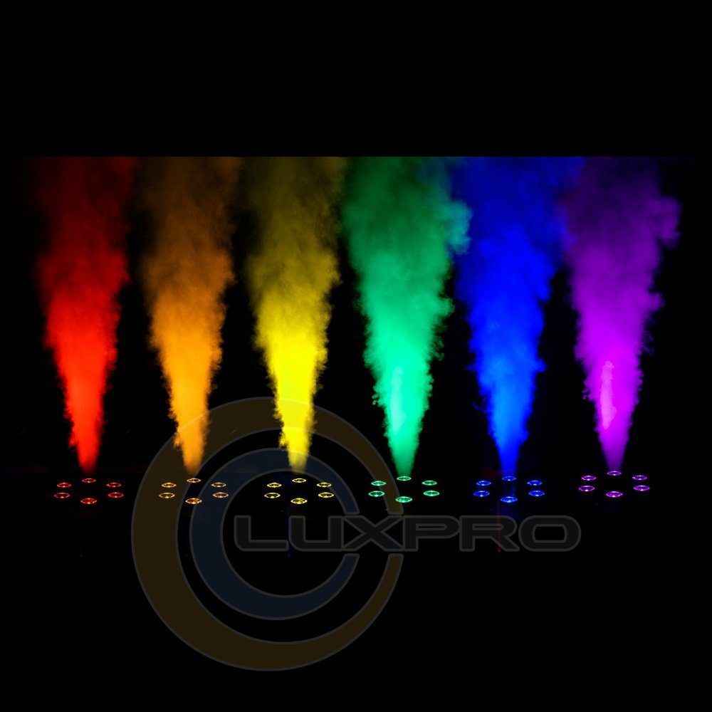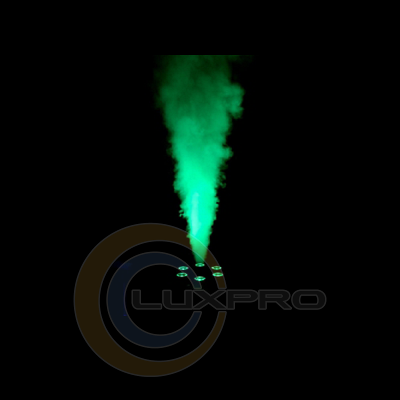 CHAUVET Geyser T6 створює динамічний і безпечний ефект, подібний піротехнічному - без використання токсичних хімікатів, вогню або сухого льоду. Комбінація з 6 потужних п'ятикольорових RGB світлодіодів дозволяє вам легко домогтися необхідного кольору заливки, перетворюючи стовп диму в приголомшливий ефект. Крім елементів управління, розміщених на корпусі і яскравого цифрового дисплея, він комплектується провідним контролером для дистанційного керування. Також Geyser T6 оснащений сенсором наявності рідини, що відключає нагрівальний елемент, щоб захистити його від перегріву.