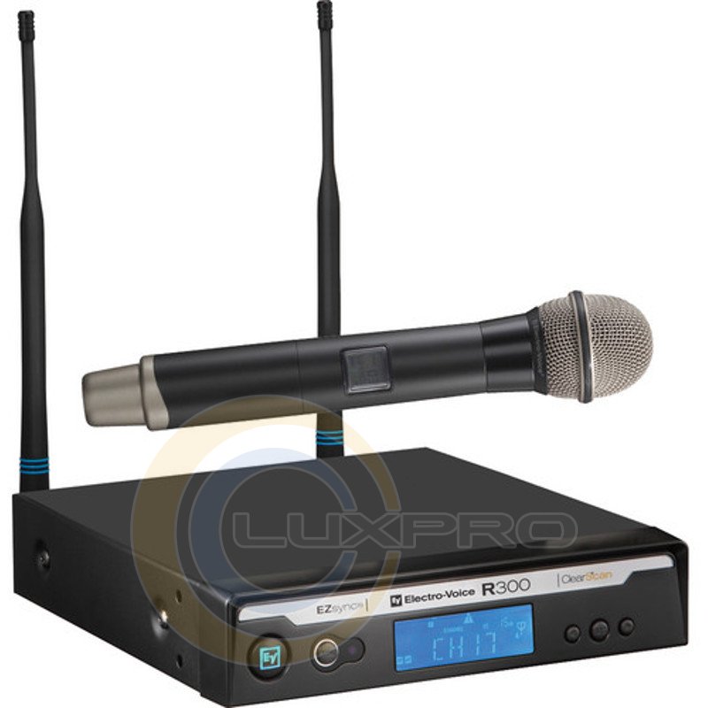 В системі R300 використовується система автоматичної настройки несучої частоти Electro-Voice ClearScan™, перевірена багаторічним досвідом використання в численних турах і інсталяціях. Натисненням однієї кнопки на приймачі включається сканування 32 попередньо встановлених радіоканалів, з яких ClearScan™ вибирає найчистіший. Це дозволяє з упевненістю працювати в сучасному переповненому ефірі без шуму навіть на великих дистанціях.