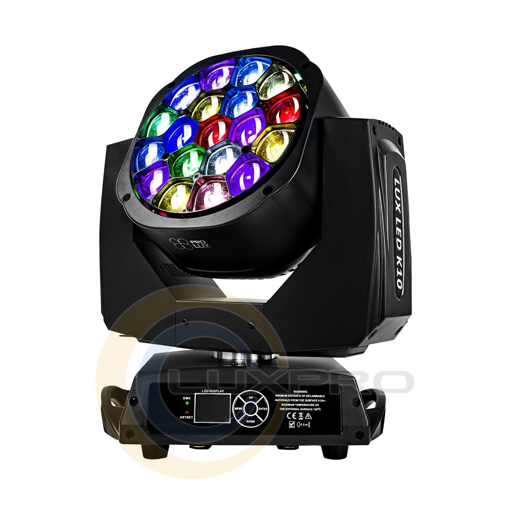 Світлодіодний повноповоротний прожектор включає в себе функції Wash, Beam і Effect завдяки широкому діапазону зміни кутів розкриття і обертається лінзі.