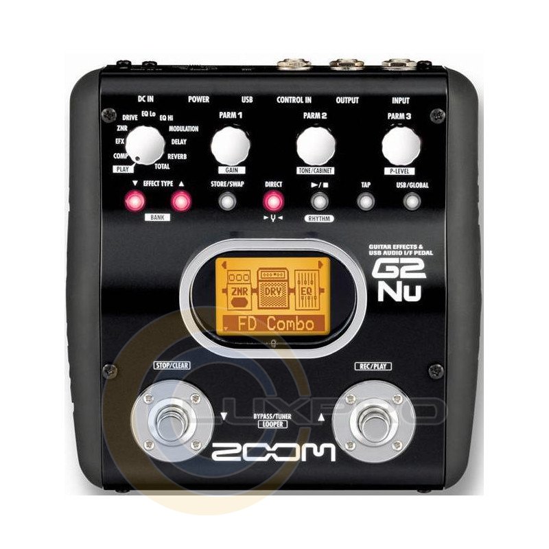 Одним з найважливіших нововведень став новий 1.9 '' LCD-дисплей. За допомогою цього дійсно великого дисплея робота з пристроєм стала набагато простіше. Новітня розробка компанії - чіп ZFX. Цей чіп дозволяє вловити найменші деталі вашої гри і перетворює їх в звуковий сигнал. Кожен нюанс, кожен дотик ... ніколи ще процесор не був настільки чуйний. Все під рукою, від легендарних тембрів 60-х і 70-х років, до звучання модерн-метал груп і артистів сучасності. Процесор ефектів для електрогітари ZOOM G2NU дає вам можливість вибирати те, що вам дійсно потрібно. Якщо ви не знайшли відповідного звуку, створіть свій. На це вам в розпорядження дано 100 програмованих банків. За допомогою вбудованої функції петлі (Looper) ви можете записувати в пам'ять процесора фрази довгою до 5-ти секунд для подальшого відтворення в режимі реального часу.