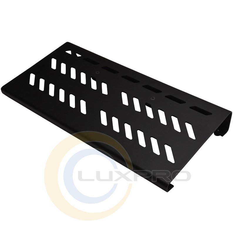 GF-1BAK BK (GPBBAK1) - педалборд алюмінієвий (плита) в комплекті з міцної нейлонової сумкою для перенесення. Формат плити дозволяє розміщувати гітарні педалі різних виробників і різних розмірів. На зворотному боці плити знаходиться універсальний кронштейн призначений для установки більшості блоків живлення, а на самій плиті перфорація (отвори) для підключення кабелів і проводів живлення - за задумом дроти ховаються під плиту і не заважають. Плита педалборд Gator GF-1BAK BK (GPBBAK1) обладнана регульованими нековзними гумовими ніжками для кращої стійкості і вирівнювання в разі потреби.