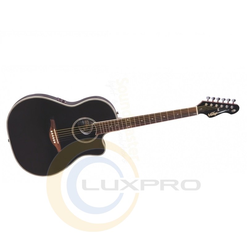 Акустична гітара Vintage VR6BK з електронікою Fishman Isys T (Предусилитель) і Fishman Sonicore (Звукознімач). Виконана в елегантному стилі, чорного кольору. Верхня дека виготовлена з цільного шматка ялини, гриф - клен з палісандровою накладкою. Довжина мензури 648 мм.