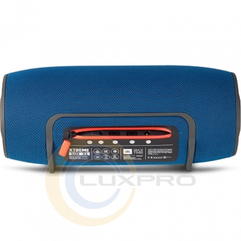 Описуваний динамік обладнаний літій-іонним акумулятором ємністю 10 000 мАг, який гарантує 15 годин автономного відтворення аудіоконтенту на помірному рівні гучності. До того ж, якщо ваш смартфон розрядиться далеко від цивілізації, то ви зможете відновити його заряд за допомогою портативної акустики JBL Xtreme Bluetooth Blue, так як вона розрахована і на підзарядку зовнішніх пристроїв. Для цієї мети є два порти на задній стороні.