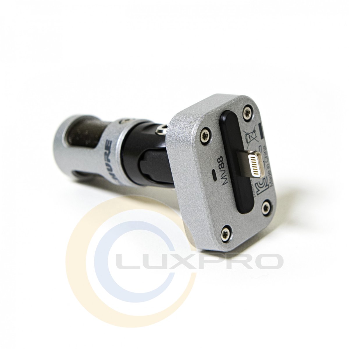 Цифровий конденсаторний стереомикрофон SHURE MV88 призначений для звукозапису записи на мобільні пристрої і планшети Apple. Спеціально для цього мікрофон обладнаний роз'ємом Lightning, завдяки якому і відбувається гранично просте і швидке підключення. Конденсаторний мікрофон MV88 безпосередньо підключається до будь-якого пристрою на платформі iOS, при цьому забезпечуючи звукозапис високої якості. Це відбувається за рахунок інноваційних технологій компанії Shure.Сам звукозаписний елемент міцно кріпиться до основи, яке забезпечує обертання на 90 гр. Це дає можливість направити мікрофон прямо на джерело звуку. Використовуючи безкоштовний додаток ShurePlus MOTIV користувачі пристрою можуть вибирати з 5 готових пресетів, регулювати чутливість мікрофона і виробляти настройки еквалайзером. Крім цього є лімітер і компресор. Діаграма спрямованості мікрофона може регулюватися в автоматичному або ручному режимі. Цифрова якість запису забезпечує канал шириною 24 біт / 48 кГц, а суцільнометалевий корпус дозволяє впевнено працювати в самих екстремальних умовах.Особливості: