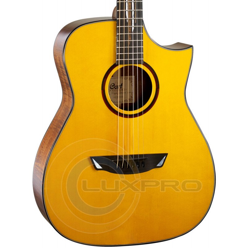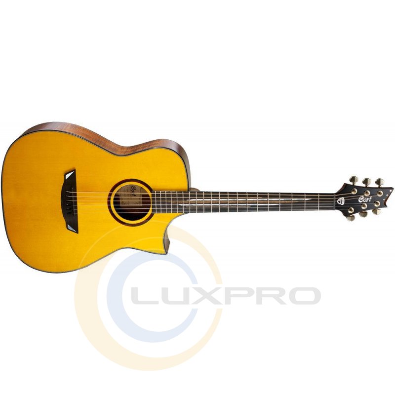 CORT LUXE NAT w / case - електроакустична гітара, верхня дека: цільна червона ялина (Adirondack Spruce), нижня дека: цільна австралійська акація (Blackwood), обичайка: цільна Австралійська Акація (Blackwood), гриф: червоне дерево (Mahogany) c накладкою з чорного дерева (Ebony), бридж: чорне дерево (Ebony), верхній поріжок: Graph-Tech Black TUSQ (ширина 43мм), нижній поріжок: Graph-Tech Black TUSQ механіка: закриті позолочені колки, струни: D'Addario USA EXP Custom ( .010, .014, .018 (без обмотки), .030, .039, .047).