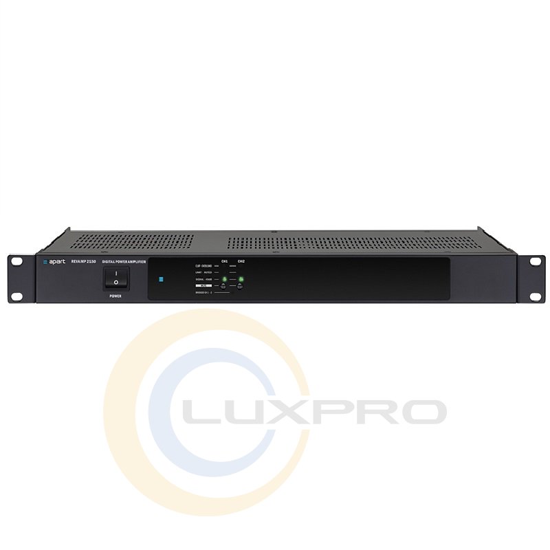 Apart REVAMP2125 - професійний 2-канальний цифровий підсилювач потужності. Вихідні каскади класу D, імпульсний switching mode джерело живлення і пасивна система охолодження - забезпечують безшумну роботу, невеликі габарити і малу вагу. Підсилювач забезпечений захистом від перевантаження, від перегріву, від постійного однатока.