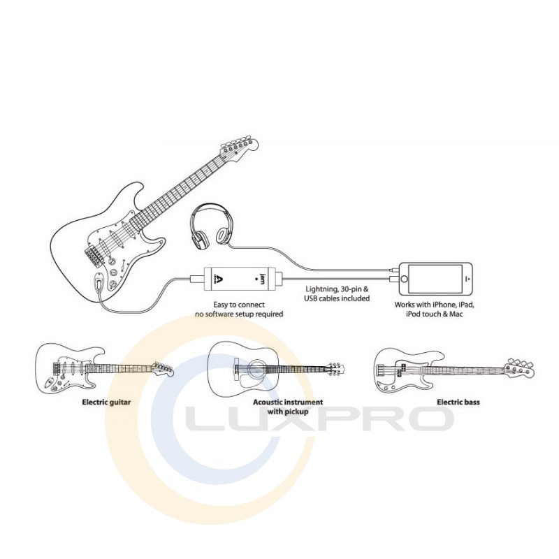 - тип: гітарний аудіоінтерфейс для MAC, iPad, iPhone, iPodTouch;