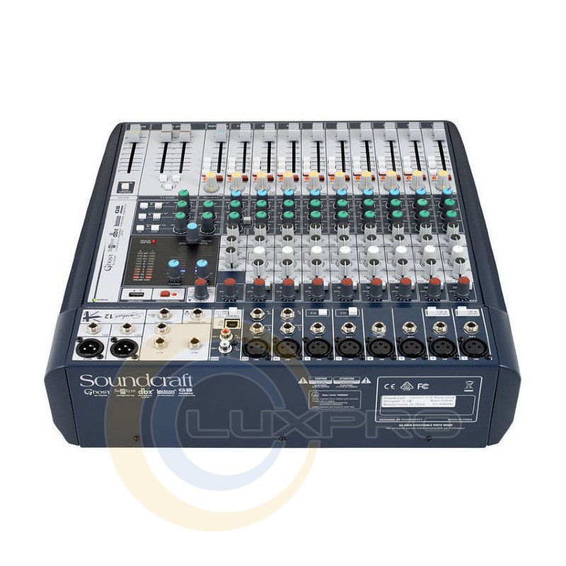 Пульт SOUNDCRAFT SIGNATURE 12 обладнаний 8 мікрофонними передпідсилювачами Soundcraft® Ghost, які зазвичай встановлюються на топові моделі, високоякісними 60-мм фейдерами і трьохсмуговим еквалайзером Soundcraft® Sapphyre. Передбачені роз'єми XLR і входи Hi-Z для прямого підключення гітар та інших інструментів. Можливості комутації включають також наявність двох входів USB і двох виходів. Модель оснащена набором вбудованих ефектів Lexicon студійної якості, включаючи реверберацію, хорус, модуляцію і інші. Мікшер Signature 12 здатний тривалий час працювати в самих жорстких умовах концертних майданчиків і турів, він поміщений в міцний і надійний металевий корпус, оснащений універсальним вбудованим блоком живлення.