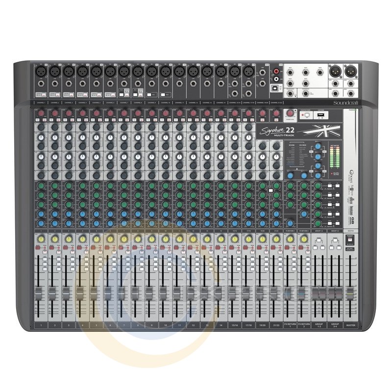 SOUNDCRAFT SIGNATURE 22MTK - 22-х канальний мікшерний пульт. Мікшер SOUNDCRAFT SIGNATURE 22MTK включає в себе USB інтерфейс з ультранизької затримкою і безпрецедентний British звук Soundcraft. І не важливо де Ви працюєте на живому концерті, в студії або записуєте демо, 22MTK дасть Вам чудові результати завдяки високого класу Ghost передпідсилювачам, самому музичному еквалайзера, Lexicon ефектів і потужної dbx динаміці - все зроблено для того, щоб Ви по новому відкрили для себе Soundcraft.