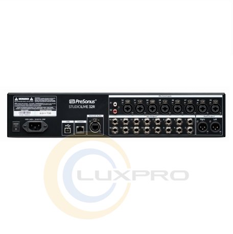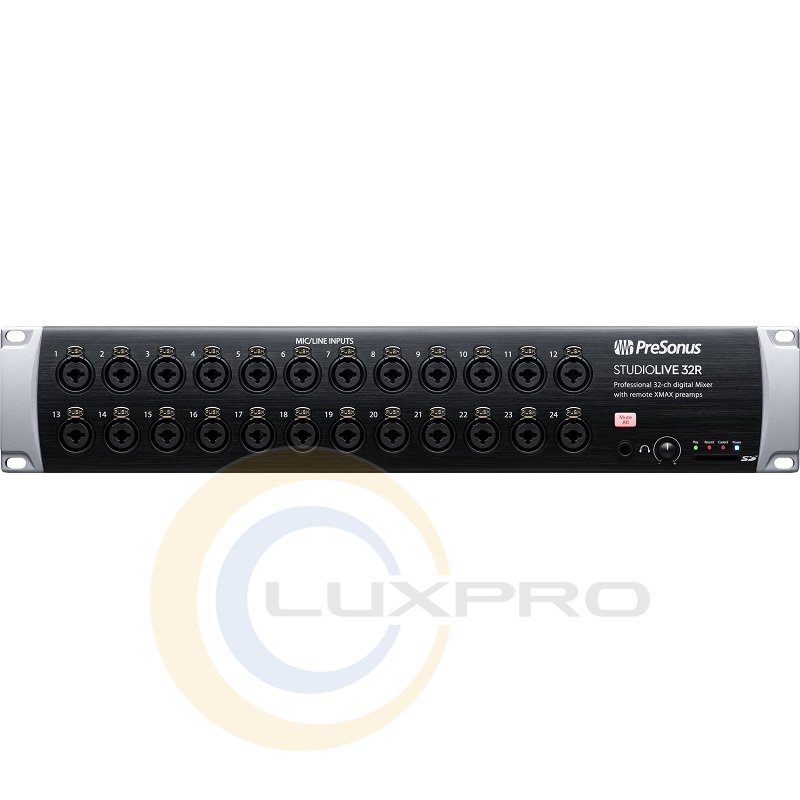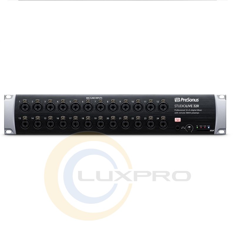 PreSonus StudioLive 32R 32-канальний 2-ступінчастий рековий мікшер. Мікшер обладнаний для мережі AVB, що дозволяє підключати його до іншого пульта серії III за допомогою простого, легкого кабелю CAT5e або CAT6 Ethernet. Всі вбудовані мікрофонні попередні XMAX можуть управлятися дистанційно. У режимі сценічного блоку + мониторного мікшера StudioLive 32R не тільки служить професійним мережевим блоком сцени, але і являє собою повномасштабний моніторний мікшер з розширеною обробкою і потужністю.