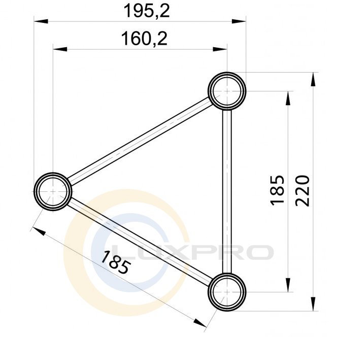 Ферма TRI 220 A виконана з труби 35 x 1,5 мм і перемичок 8 мм, обладнана конічним коннектором - гніздом SZ 05.01. Алюмінієва ферма завдяки своїй конструкції має привабливий, не громіздкий вигляд і велику витривалість, високу стійкість до впливу на них великих навантажень. Із застосуванням наших систем можна створювати різноманітні конструкції в залежності від поставленої мети. У тому числі алюмінієві ферми можуть бути підставою конструкції даху сцени, можуть застосовуватися для створення конструкцій виставкових павільйонів, конструкцій для кріплення проекційних і LED екранів, секцій для розташування звукового і освітлювального устаткування. Якість кожної ферми знаходиться на максимально можливому для подібного виду виробів рівні, що підтверджено сертифікатами ISO DIN 4113 і TUV, а кожен елемент пройшов кілька стадій перевірки якості.