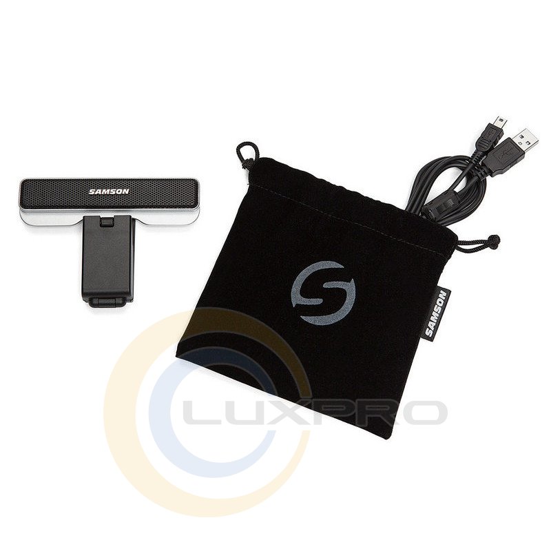 SAMSON GO MIC CONNECT - портативний USB мікрофон з технологією Focused Pattern Technology ™, ідеальний для VoIP телефонії, 16 біт, 44.1 / 48кГц, сумісний з будь-яким PC / MAC, два 10мм мікрофонних капсуля, кнопка Mute і вихід для навушників, спеціальне кріплення для установки на стіл або монітор, USB кабель і сумочка для зберігання в комплекті.