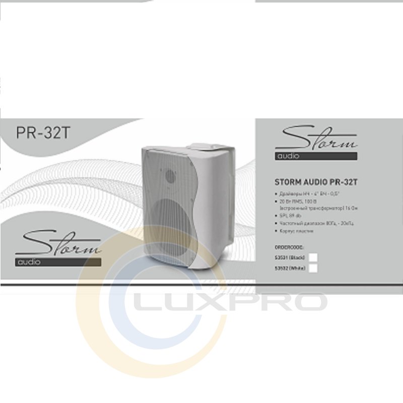 STORM AUDIO PR-32T White - акустична система, драйвери НЧ - 4 "ВЧ - 0,5", 20 Вт RMS, 100 В (вбудований трансформатор) 16 Ом, SPL 89 db. Частотний діапазон 80Гц - 20кГц. Корпус із пластику, колір - білий.
