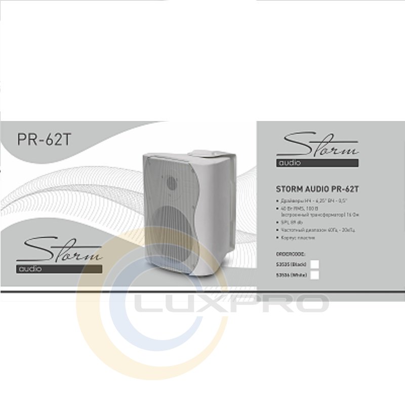 STORM AUDIO PR-62T White - акустична система, драйвери НЧ - 6,25 "ВЧ - 0,5", 40 Вт RMS, 100 В (вбудований трансформатор) 16 Ом, SPL 89 db. Частотний діапазон 40Гц - 20кГц. Корпус із пластику, колір - білий.