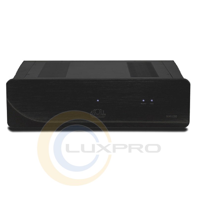 Стереофонічний підсилювач потужності Atoll AM400 входить в престижну "чотирьохсоту" серію компонентів фірми і володіє першокласної конструкцією і високою якістю звучання. Апарат може працювати в двоканальному або мостовому (як моноблок) режимах, в залежності від конфігурації аудіосистеми і необхідної величини вихідної потужності.У вихідних каскадах Atoll AM400 працює по вісім MOSFET-транзисторів, що забезпечують струм, достатній для розкачки будь-яких акустичних систем. Для підключення оконечниками до клем на задній панелі використовується кабель з посрібленою безкисневої міді, виготовлений на замовлення компанії Atoll провідним французьким виробником High-End з'єднувачів. У блоці живлення підсилювача Atoll AM400 встановлений масивний тороїдальний трансформатор з роздільними вторинними обмотками для живлення кожного каналу. Це забезпечує повністю симетричну конструкцію підсилювача, виконану за принципом "подвійного моно". Диференціальне побудова каскадів дозволило отримати точне, детальне і збалансоване звучання при високій стабільності роботи підсилювача. Струмопровідні покриття друкованих плат, на яких змонтована схема AM400, має підвищену товщину для підвищення надійності його роботи.Для фільтрації напруги живлення використовується 16 паралельно включених замовних конденсаторів (по вісім для кожного каналу), також виготовлених у Франції. Підсилювач оснащений небалансних входами (продубльованими транзитними виходами), а також балансними XLR-роз'ємами. Для підключення акустичних систем призначені солідні позолочені гвинтові клеми. Металеве шасі підсилювача має товщину 2 міліметри, а передня панель являє собою плиту з алюмінію завтовшки 8 мм. Про солідність конструкції Atoll AM400 говорить і вага апарату, який становить 19 кілограм.На відміну від інших компонентів фірми Atoll серії 400, даний підсилювач потужності має класичний дизайн, і його можна використовувати в складі систем з технікою інших фірм, отримуючи повне стилістичну одноманітність.Характеристики: