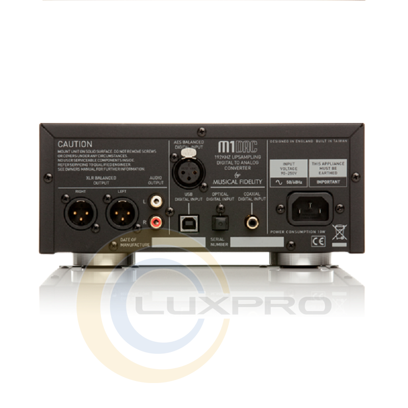 Цифроаналоговий перетворювач Musical Fidelity M1-DAC дозволяє відтворювати звук з будь-якого цифрового джерела з максимальною достовірністю. Він прекрасно підходить для тих, хто вважає за краще слухати музику з персонального комп'ютера або медіаплеєра, але при цьому не готовий миритися з компромісною якістю. Крім того, M1-DAC є оптимальним вибором для власників DVD або Blu-ray програвачів, які хочуть відтворювати традиційні CD з високою якістю, але при цьому не хочуть купувати спеціальні програвачі CD. Більш того, навіть при використанні з класичними CD-програвачами, M1-DAC здатний поліпшити якість звучання більшості моделей, представлених на ринку. Окремо потрібно відзначити, що M1-DAC підвищує частоту дискретизації будь-якого вхідного сигналу до величини 192 кГц.