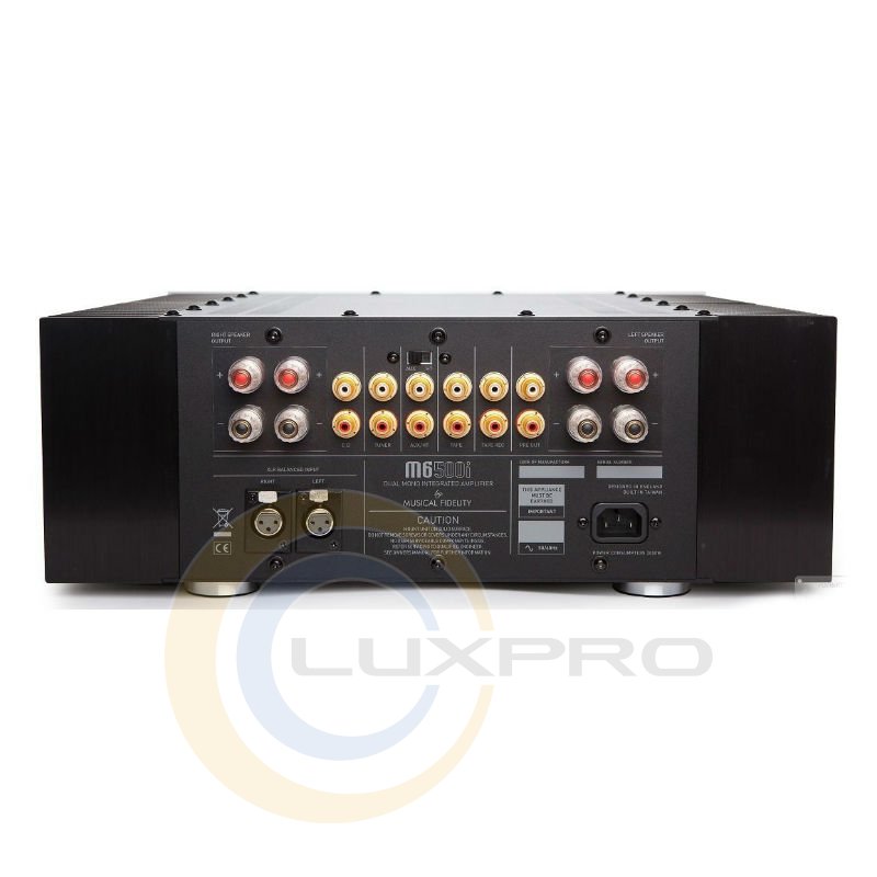 Зовсім недавно модельний ряд компанії Musical Fidelity поповнився новим двоканальним інтегральним підсилювачем Musical Fidelity M6 500i. Пристрій, виконаний за схемою подвійного моно, відноситься до класу AB, володіє точною і вельми продуманою системою управління, а також елегантним дизайном корпусу.Потужність, яка припадає на кожен канал, становить 500 Вт, а вихідний імпеданс дорівнює 8 Ом. Крім того всередині вишуканого металевого корпусу Musical Fidelity M6 500i. розміщений попередній підсилювач, який забезпечений індивідуальним блоком живлення. Кожен моноблок підсилювача також володіє власним трансформатором і радіатором. Дванадцять сучасних двополюсних транзисторів дозволяють досягати пікових вихідних струмів силою до 200 А. Завдяки потужній електронній начинці, підсилювач може вільно регулювати вихідну напругу незалежно від фактичного навантаження.Внесені підсилювачем спотворення знаходяться на вкрай низькому рівні. За запевненням виробника при 1 кГц спотворення складають 0,008%, при 20 кГц вони піднімаються до 0,015%. При 50 кГц, що не чутні людським вухом, дисторсии не перевищують 0,02%.Не можна не згадати про прецизійний механізм регулювання гучності, створений на базі резисторів з лазерною підгонкою номіналу. Новинка забезпечена повним набором вхідних і вихідних роз'ємів, серед яких як стандартні RCA-роз'єми, так і балансові XLR-коннектори, а також 4-мм клеми для підключення акустичних систем.Характеристики: