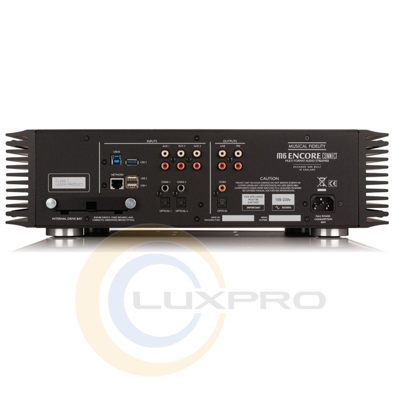 Musical Fidelity M6 ENCORE CONNECT є повним аудіо рішенням, яке дозволяє зберігати всю Вашу музику в одному місці. Він сумісний з практично будь-якими мислимими форматами аналогового або цифрового джерела звуку. Він також сумісний з багатьма мережевими колонками, такими як Sonos. Encore 225 має великий, яскравий повнокольоровий дисплей з високою роздільною здатністю, для наочної настройки і відображення мета-даних Ваших записів.Мережевий програвач, ЦАП, мультимедійний комплекс. ЦАП: 32 біт / 384 кГц. Легкий і зручний у використанні. 1TB внутрішньої пам'яті. Сумісність з більшістю мережевих динаміків. Висока роздільна здатність, повнокольоровий дисплей. Контроль за допомогою пульта або додатки Apple і Android. Двоядерний 64-розрядний процесор Intel.Характеристики: