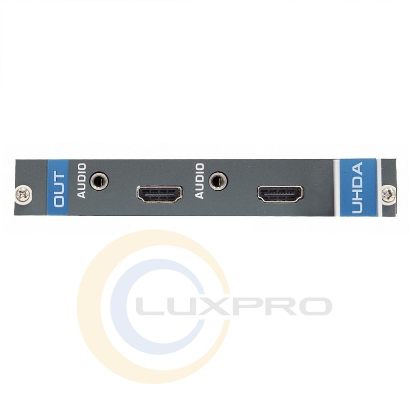 UHDA-OUT2-F16/STANDALONE - модуль c 2 виходами UHD HDMI 4K і виходами аналогового стереоаудіо на 3,5-мм роз'єми, що встановлюється в шасі модульного матричного комутатора Kramer VS-1616D / DT.Характеристики: