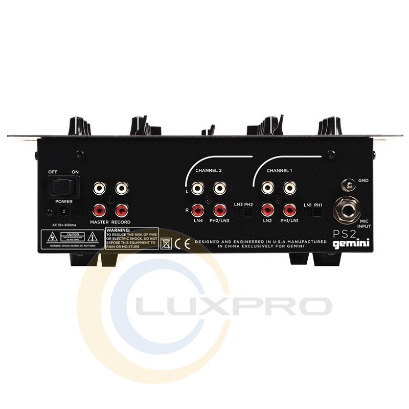 Gemini PS2 є 2х-канальний, 10-дюймовий мікшер. Володіє високою функціональністю, міцним стильним корпусом. Особливості моделі складають 4 лінійних RCA входу, 4 phono / line входу, PS2 забезпечить всі необхідні сполуки. Є можливість підключити зовнішнє записуючий пристрій.