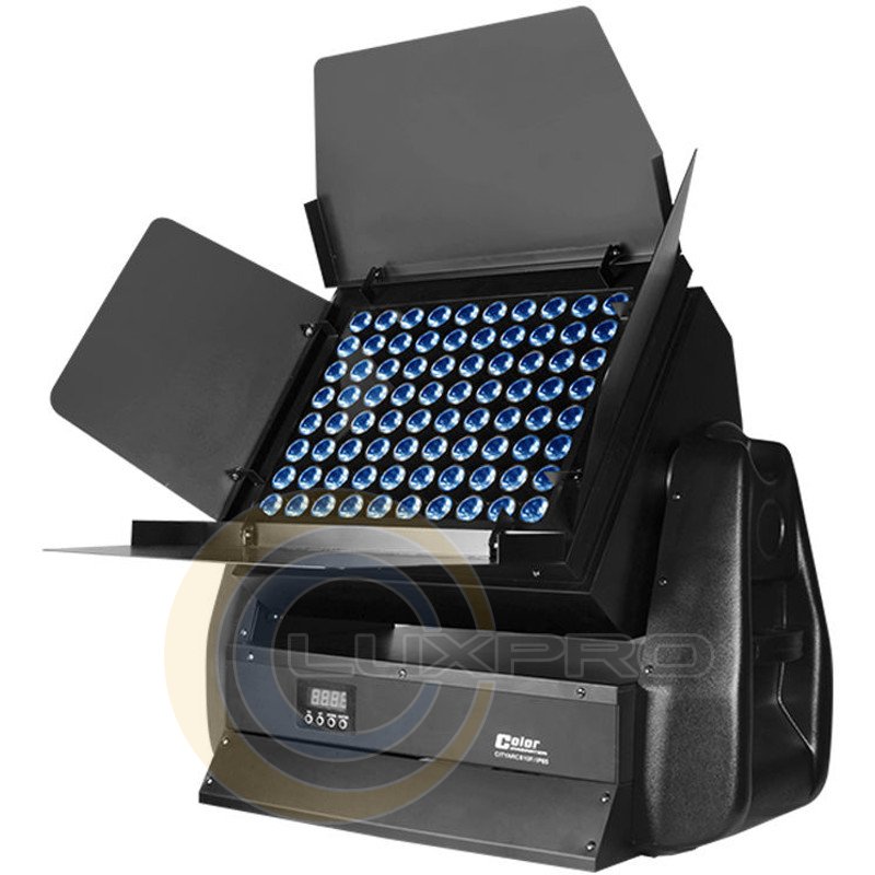 CITYARC 7018IP має водонепроникний корпус IP65 з кутом TILT, з регульованим вручну кутом нахилу, щоб висвітлювати великі архітектури під будь-яким кутом з будь-якими еольорами шляхом змішування. Прожектор обладнаний світлодіодами 70PCS 18W 6-IN-1, RGBWA+UV.