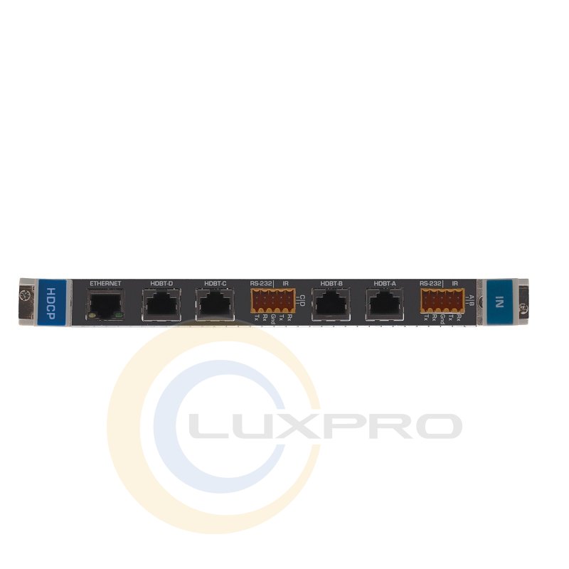 HDBT-IN4-F32 - вхідна плата модульного матричного комутатора Kramer VS-3232DN, обладнана чотирма входами в виту пару HDBaseT для передачі сигналів HDMI. Швидкість передачі даних може досягати 6.65 Гбіт / с (2.25 Гбіт / с на канал). Є можливість обміну через RS-232 між клемами на модулі і відповідним передавачем, наприклад, TP-580T, а також реплікації Ethernet 100BaseT між портом на модулі і сумісним передавачем, наприклад TP-581T або TP-582T.Характеристики: