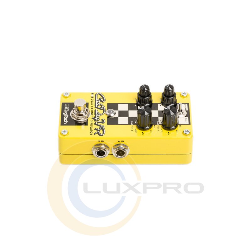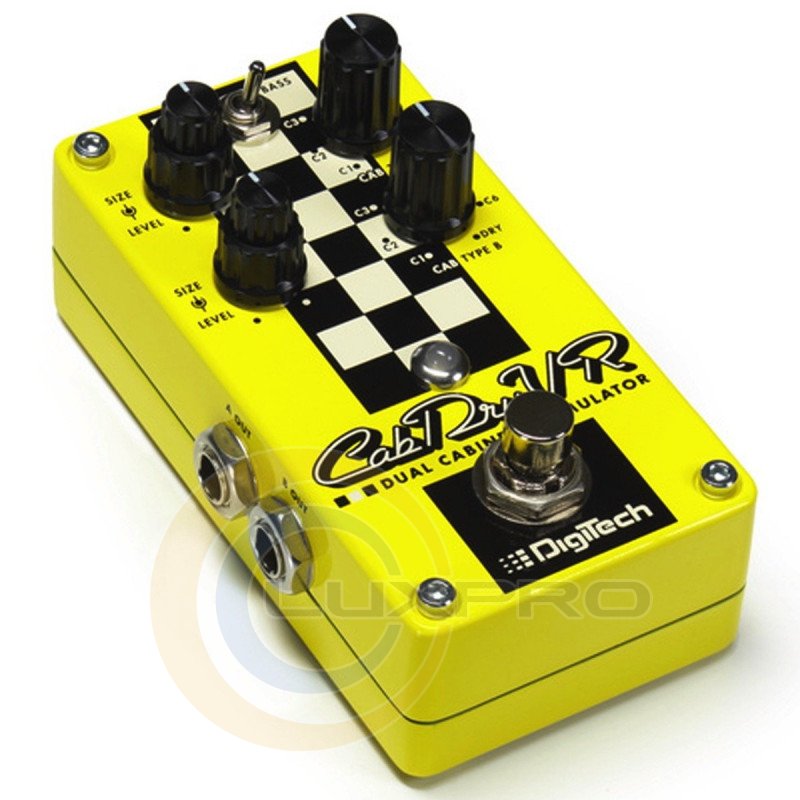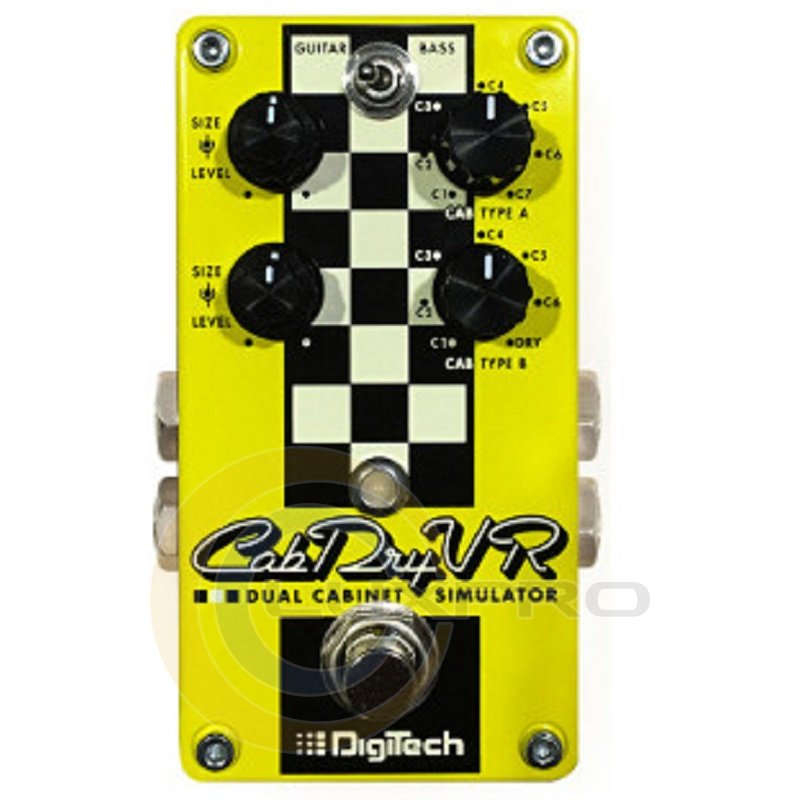 Digitech CabDryVR- подвійна педаль симуляції кабінетів, 14 гітарних і басових імпульсів кабінетів. 2-х канальний гітарний і басовий педальний спікосімулятор. Гітарна педаль DIGITECH CABDRYVR - новинка від компанії Digitech, яка є двоканальним спікосімулятором. Педаль має на борту емуляцію 14 гітарних і басових кабінетів, а також пресет, який дозволяє пропускати паралельно необроблений сигнал від гітари в комбопідсилювач, що зробить ваш звук більш об'ємним в концертних умовах, на студії, або вдома. Педаль ефектів DIGITECH CABDRYVR має два входи і виходи, ручки регулювання гучності для кожного каналу і розмір кабінетів. Харчується модель від стандартного блоку живлення 9VDC.