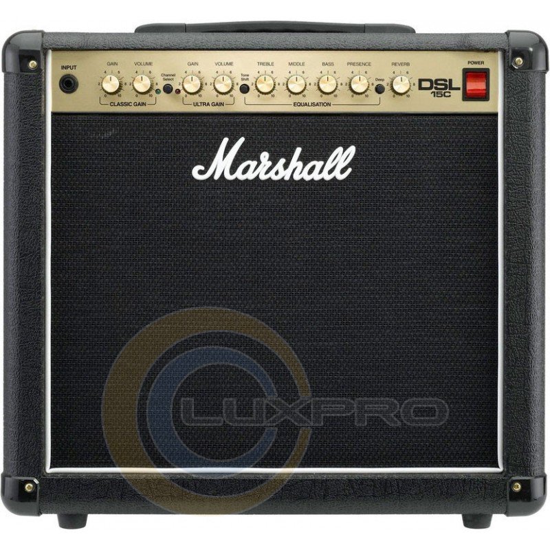 MARSHALL DSL15C - компактний, ламповий гітарний комбопідсилювач з 12 '' динаміком Celestion. Комбопідсилювач MARSHALL DSL15C має 2 канали Classic Gain і Ultra Gain з можливістю їх перемикання з ножного перемикача. Обидва канали мають загальний 4-х смуговий еквалайзер з регуляторами Treble, Middle, Bass і Presence.