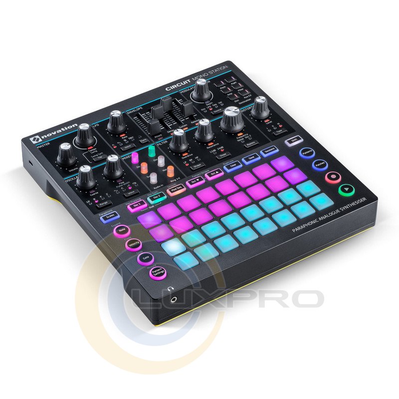 NOVATION CIRCUIT MONO STATION - парафоніческій аналоговий синтезатор з 3-трекових секвенсором, 2 осцилляторами і 32 RGB педами. Розроблений на основі Novation Circuit і Bass Station II новий NOVATION CIRCUIT MONO STATION успадкував 32 динамічних педа з RGB-підсвічуванням і аналоговий звуковий движок. В синтезатор входять 2 осцилятора, 3 рівня спотворення і один мульти-фільтр, який виставляється на high-pass, low-pass або band-pass.